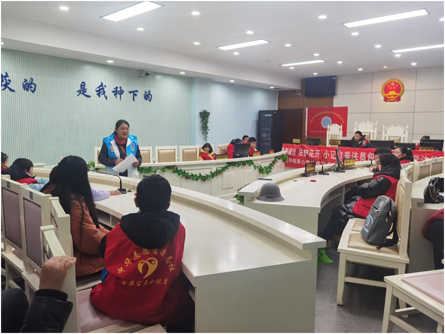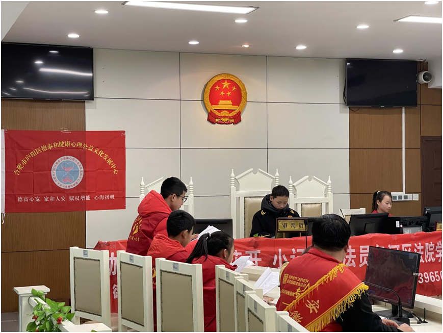 没错,这就是由德泰和健康心理公益文化发展中心组织的“助笋成竹法护花开—小记者普法员包河区法院学法活动”——模拟法庭的场景。法庭,似乎与小学生遥不可及,但是今天,让大家看到了法庭的“庐山真面目”。
