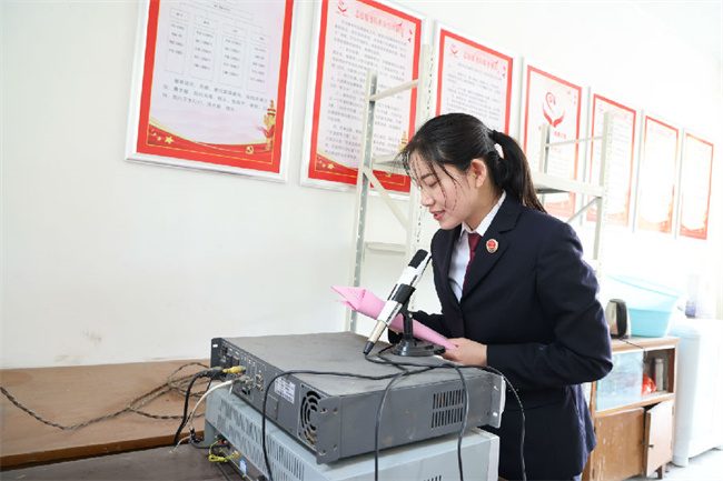5月12日,山东省沂水县检察院组织青年干警到沙沟镇小崮头村开展基层宣讲活动。检察官通过农村广播宣讲、入户面对面宣讲等方式,向村民们讲解法律知识,并发放了民法典知识100问、信访工作条例、临沂市法治乡村条例等宣传资料。本报记者郭树合 通讯员张红红摄