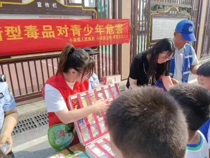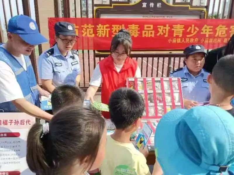 小庙镇综治办联合派出所、司法所、惠普社工师事务所,在小庙中心学校开展“防范新型毒品对青少年危害”主题宣传活动,助力“平安校园”建设。活动中,民警通过讲解禁毒展板、展示仿真毒品模型等方式,向学生们生动地介绍毒品的种类及危害,同时,指导孩子们认识和辨别新型毒品,如“跳跳糖”“曲奇饼干”“笑气”“邮票”等,进一步增强学生对禁毒知识的了解,提高了分辨和防范毒品侵害的能力,营造良好的法治宣传氛围。
