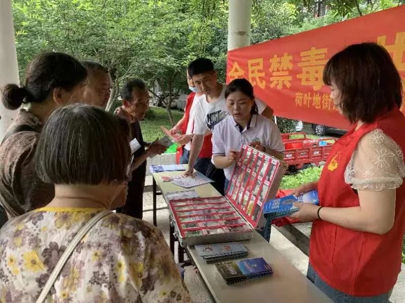 荷叶地街道联合社区、惠普社工师事务所,在四方新村广场开展“全民禁毒 共享幸福”禁毒宣传活动。活动现场,街道志愿者和禁毒社工通过发放禁毒手册及宣传单、展示仿真毒品模型等形式,以及防范毒品的相关知识,告知群众要有警觉戒备意识,提高对诱惑的警惕性,同时鼓励大家发现涉毒违法行为及时向公安机关举报,进一步增强辖区居民“远离毒品、珍爱生命”的意识。