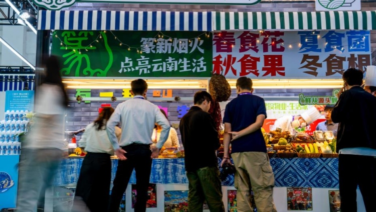 6月20日,观众在第9届中国—南亚博览会旅居云南馆选购特色食品。近年来,云南凭借自身独特优势,成为众多旅居者的目的地。近年来,云南凭借自身独特优势,成为众多旅居者的目的地。