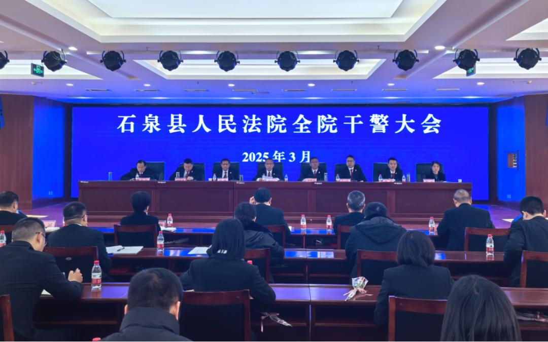 3月7日,石泉法院召开全院干警大会,全面总结2024年工作,表扬先进集体和个人,安排部署2025年工作,进一步动员全院干警创新实干、砥砺奋进。党组书记、院长蒋晓安出席会议并讲话,党组副书记、副院长黄振涛主持会议,县纪委监委派驻县法院纪检组负责人刘艳及全体院领导出席会议,全体干警参加会议。石泉法院召开金融纠纷调解中心工作推进会