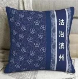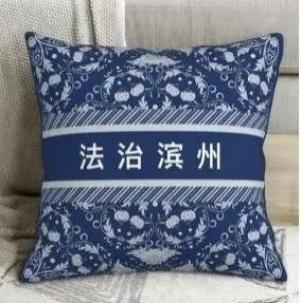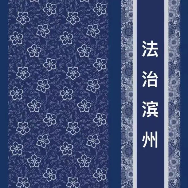 蓝印花布也是滨州一项省级非物质文化遗产,融生活与艺术于一体,色彩主要运用蓝白二色,具有清新明快、纯真朴素、自然和谐、典雅大方的艺术特点。此设计将蓝印花布元素与“法治滨州”字样相融合,既彰显了地方特色,又扩大了法治文化的影响力。