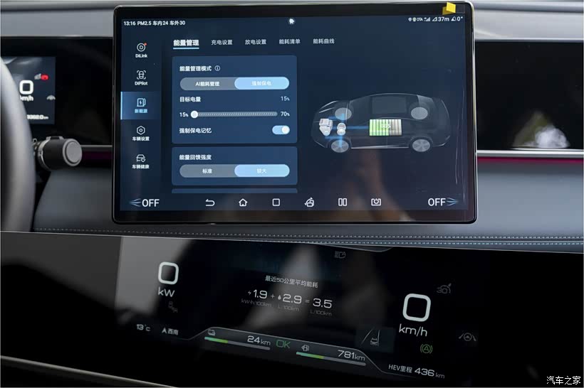 再就是很多人买车都比较关心的能耗问题了,秦L DM-i的纯电续航里程是120公里,综合续航是2020公里,一个10万出头的车能有这样的表现,属实是有点出人意料的,我还和北北开玩笑说,满油满电状态下,你自驾游从南跑到北应该都没问题吧,北北说,反正跑完这几天以后,我回去上下班再开半个月没问题。值得一提的是秦L DM-i还有对外放电功能,这是北北自驾游的时候经常会用到的功能。
