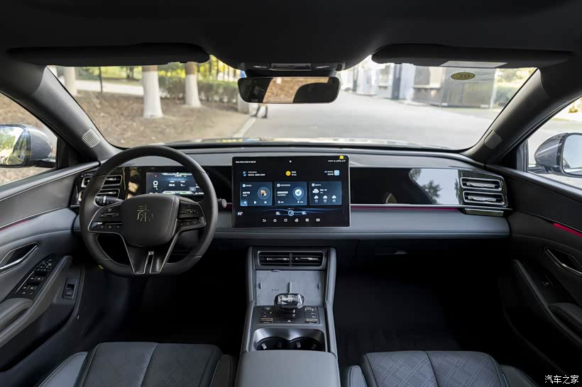 内饰也是颇具传统元素,秦L DM-i是山水画境座舱,它的内饰设计从中国山水画中汲取灵感,让东方气韵之美与现代科技之新交融,用北北的话说:坐进车里的瞬间,就是一种享受!