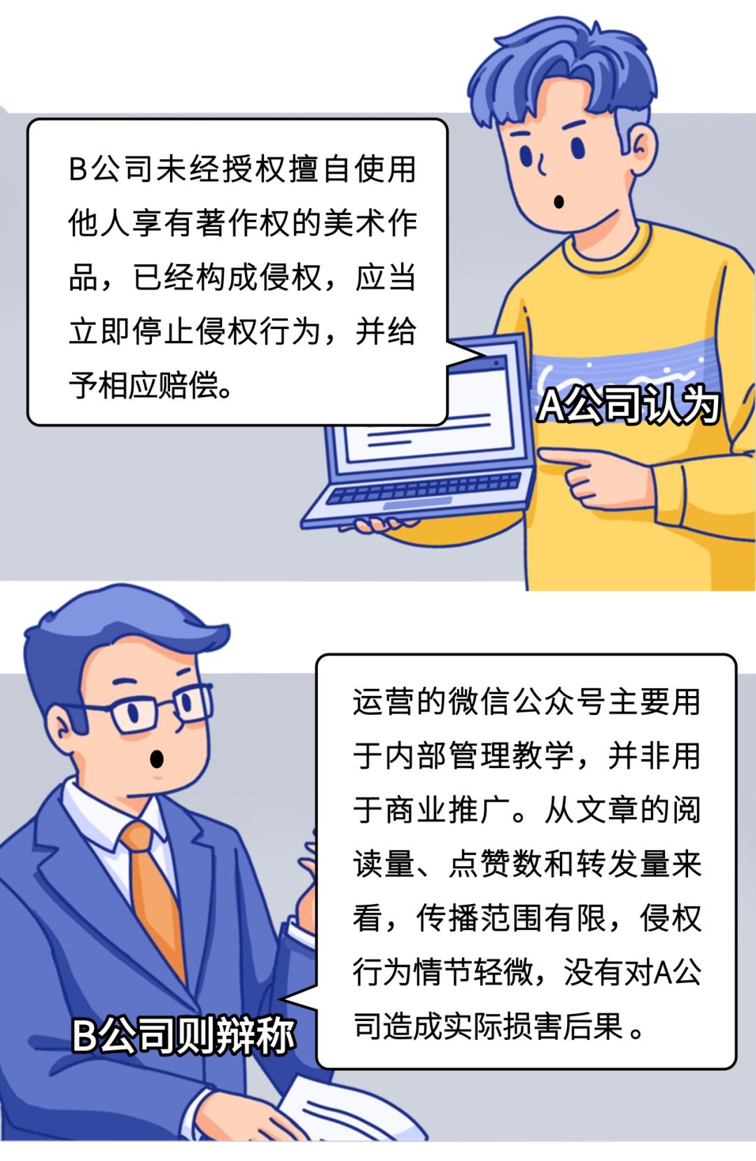 王某创作了一系列哲理漫画作品,A公司经转让获得涉案美术作品的著作权。经调查,A公司发现B公司在其运营的微信公众号中,未经许可使用了上述系列漫画中的10多幅图片。