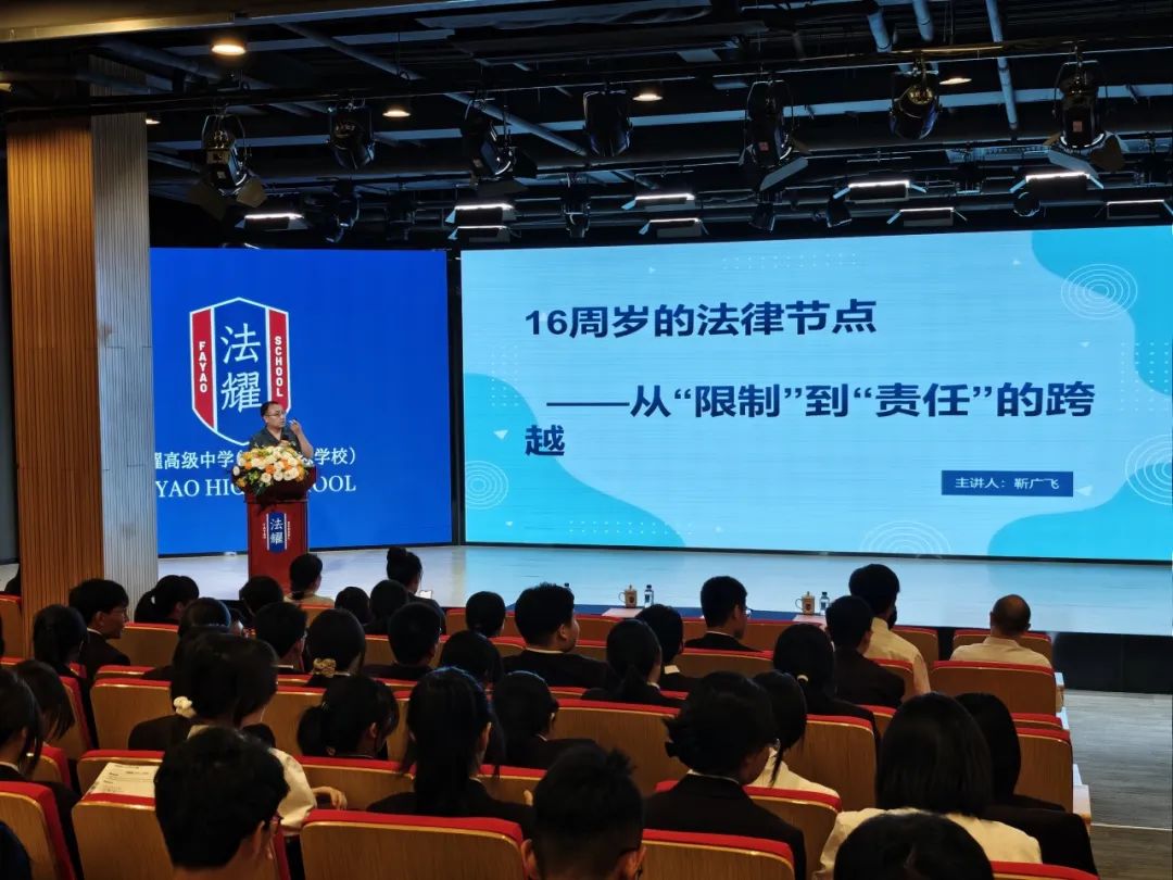 校园是梦想起航的港湾,法治是护航前行的灯塔。近日,西青法院中北法庭法官靳广飞走进法耀高级中学,作为法治副校长参加了“法耀高级中学十六周岁成年礼”,并为同学们带来了法治讲座。