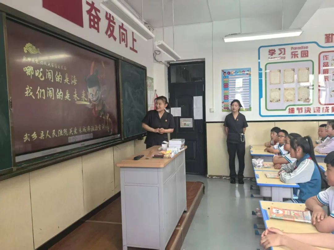 为深化青少年法治教育,武乡法院于近日以神话电影“哪吒闹海”为文化载体,走进太行小学和新世纪文武学校,开展沉浸式法治课堂。