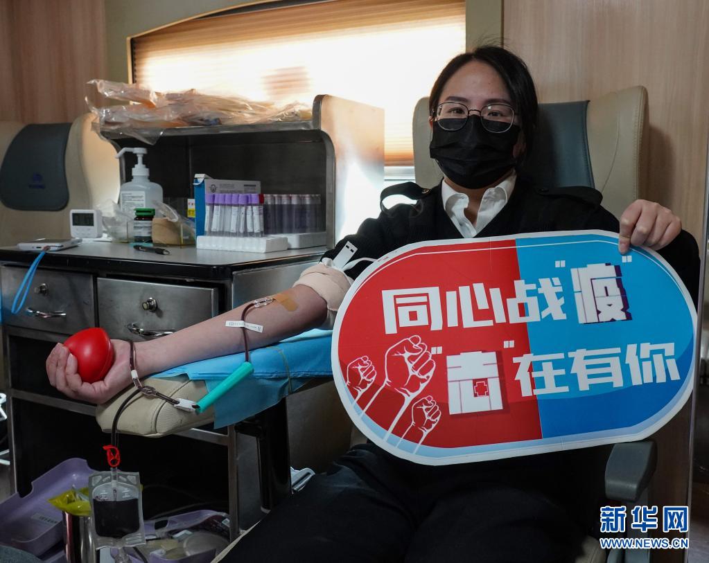 2020年3月5日,杭州海关青年关员在献血车上献血。新华社发(赵凡瑜 摄)