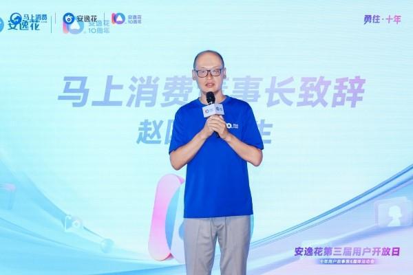 图注:马上消费董事长赵国庆在安逸花第三届用户开放日上讲话 摄影:安安