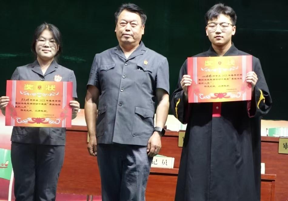 活动最后,桐川法庭庭长程选道、白马法庭庭长雷普昌为在模拟法庭中表现优异的学生颁发了荣誉证书和奖品,以此激励获奖同学在法治学习的道路上继续奋进,也鼓励更多同学积极参与法治实践活动,共同营造良好的法治校园氛围。