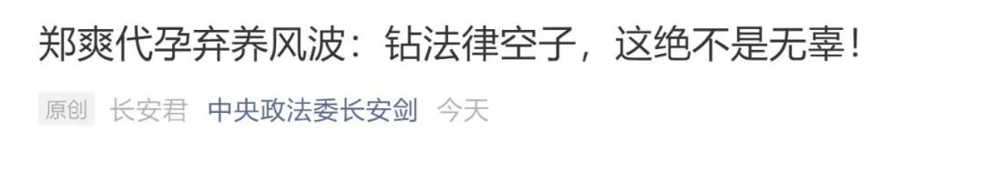 原标题:《中央政法委评郑爽代孕弃养风波:钻法律空子,这绝不是无辜!》