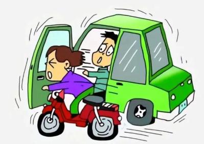 “开门杀”就是下车时没有观察清楚车后方的情况,就贸然打开车门下车。如果这时有电动车或自行车刚好在车后方行驶并且距离比较近,就会导致骑车人一下反应不及时撞到车门上。