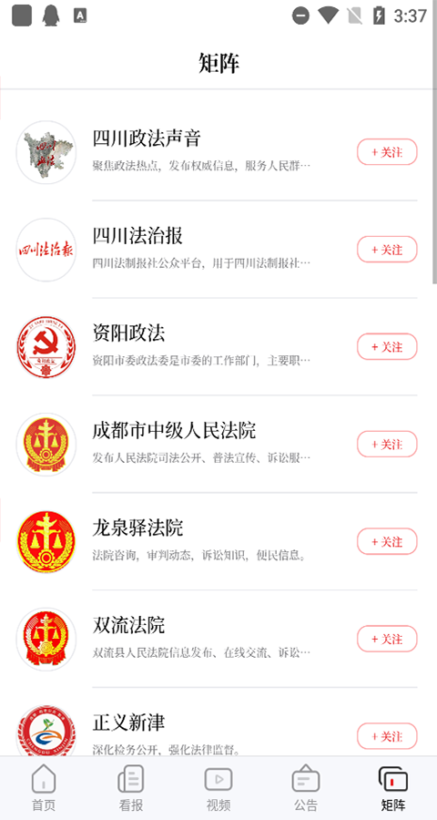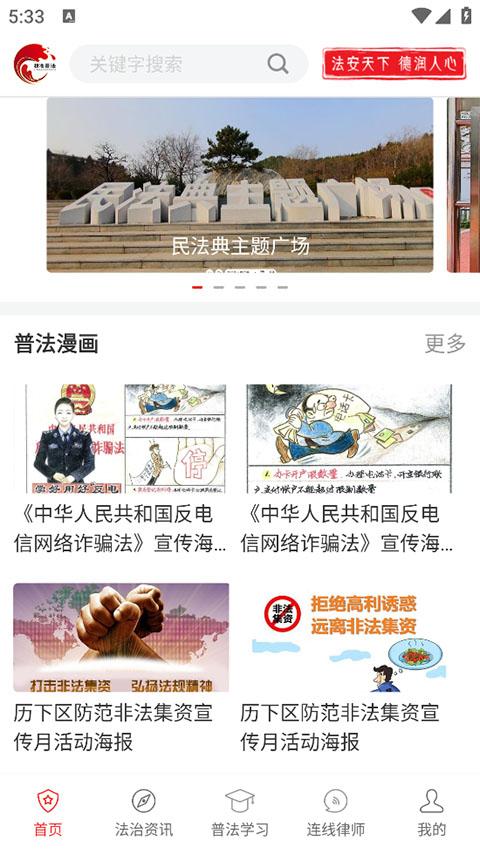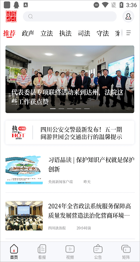 法治四川app法治四川实时发布当下的热门新闻,包含立法、知法、司法以及守法等多方面的法律相关的新闻,在文章浏览中学习法律知识,精彩视频报道真实案例,了解日常生活中使用的法律常识,潜移默化的影响用户的法治观念,让广大用户扩大法律接触渠道。