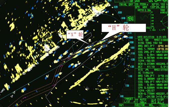 2020年10月27日, “H”轮(本航次装载铁矿石110500吨由宁波驶往江阴)航行追越过程中,在长江#57黑浮上游约500米附近,与 “X”轮(本航次装载集装箱301个标箱由宁波驶往南京)发生碰撞。事故造成两船不同程度受损。