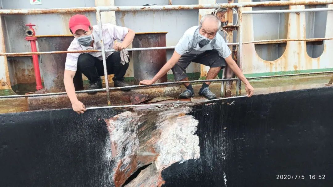 2020年7月5日0825时许, “E”轮(本航次装载6600吨三元素复合肥由张家港永恒码头驶往菲律宾)航行过程中,因舵机故障导致船舶失控,船中左舷触碰张家港海力6#码头上端,后又碰撞挤压靠泊的“Y”轮。事故造成两船和码头不同程度受损。