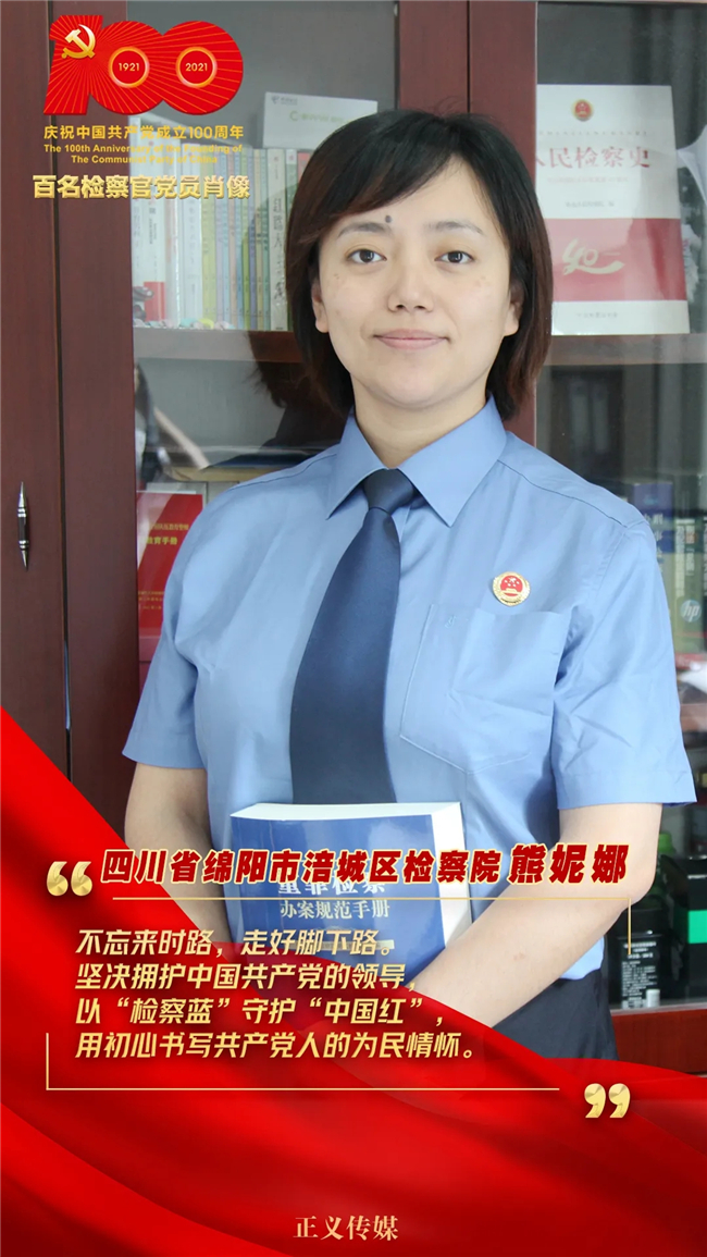 熊妮娜从检19年,始终把“崇法守正、惟精惟一”的精神熔铸于公诉事业中。她办理各类刑事案件千余起,无一错案。2020年,她成功起诉了一起“套路贷”犯罪案件,起诉犯罪嫌疑人14名,涉案金额230余万,追诉漏犯4人。她先后获得四川省优秀公诉人、全省检察机关未检业务能手、绵阳市十佳公诉人、三八红旗手等荣誉称号。今年,她又被表彰为四川政法先锋。