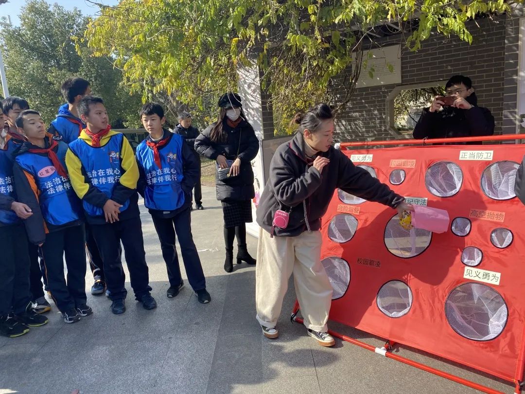 在沙包普法盘游戏中,同学们手持沙包,对准靶盘积分高的普法词汇进行投掷;幸运普法球投掷环节中,同学们将小球丢掷相应的网布内,网袋越小扔进的得分越高……这种寓教于乐的活动形式,让大家轻松的氛围中增强了法律意识。