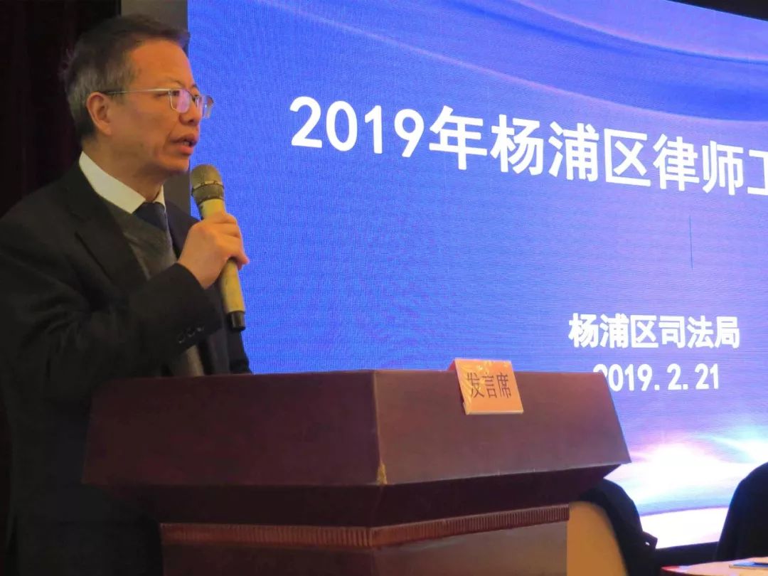 2月21日,杨浦区召开2019年律师工作会议。区司法局党委书记、局长陆静出席并讲话。会议由区司法局副局长、律师行业党委书记周志宇主持。区律师行业党委班子成员、杨浦律工委委员、律师事务所主任、党支部书记等100余人参加。
