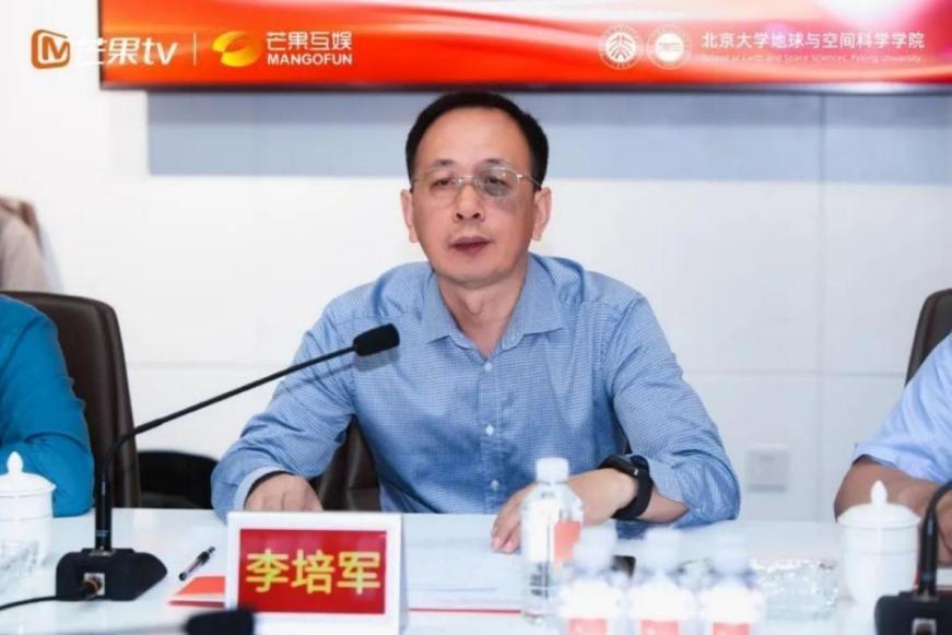 北京大学地球与空间科学学院党委书记李培军介绍了学院思政实践课教育基 地建设情况,对于相关单位的支持表示感谢。他提出,希望此次与芒果TV共建思政实践课教育基地能够发挥双方优势共同探索新时代高校思政教育的创新路径,把专业优势转化为内容丰富、形式生动、质量优秀的思政课程,借助芒果TV在青年文化传播方面的独特优势和强大影响力,为培养“胸怀国之大者、勇攀科学高峰 ”的时代青年贡献智慧与力量。