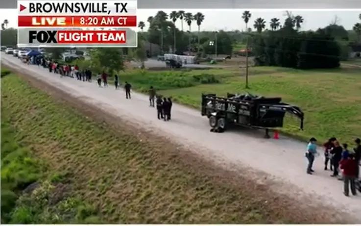 福克斯新闻于当地时间5月5日下午拍摄了一段数百名移民由墨西哥边境进入美国得克萨斯州的画面,报道中称,在《第42条法案》结束之前,移民人数已经开始暴涨,美国海关与边境保护局消息人士表示,在5月的前四天,他们每天在边境范围内能遇到8000多名移民。