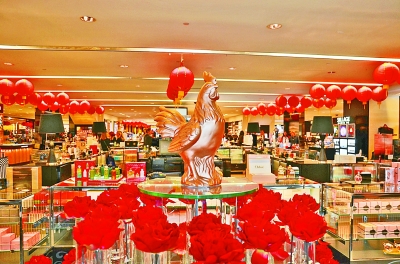 1月26日,美国布鲁明戴尔连锁商场里,矗立着一座“金鸡”,中国春节“年味儿”十足。光明日报记者 王传军摄 光明图片
