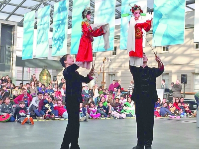 身处美国的光明日报记者耳闻目睹了正在大华盛顿地区上演的一个个“春节故事”。位于大华盛顿地区的地标性商场——“泰森角”被中国春节元素装点得喜庆欢快,一排排的大红灯笼高高挂起,一丛丛红花簇拥着雄赳赳的金鸡。农历大年初一,商场举办了一系列庆祝新年活动;美国著名艺术殿堂肯尼迪表演艺术中心则推出春节音乐会、春节家庭日、中国京剧、民乐、杂技表演等众多项目,满足观众的“过年”需求;享有盛名的美国史密森学会美国艺术博物馆、弗雷尔·塞克勒博物馆等则面向美国家庭举办“中国新年家庭日”等活动……