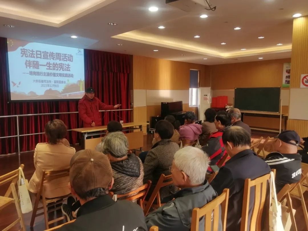 为弘扬宪法精神,树立宪法权威,让群众了解宪法、尊重宪法,大桥司法所开展普法零距离 送“宪”到身边活动,将宪法知识普及到校园、社区。