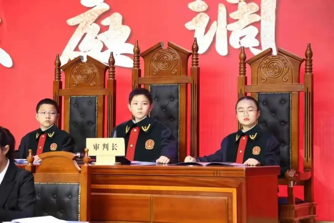 随着“书记员”宣读法庭纪律,“审判长”敲响法槌,“模拟法庭”正式拉开帷幕。孩子们分别扮演法官、公诉人、辩护人、原告、被告人等角色,让在场所有人都直观的感受到法律的严肃性和公正性。让孩子们“沉浸式”感受到法庭的威严,增强对法律的崇尚和敬畏。台下的孩子们也积极互动,畅谈感想,提出疑惑。