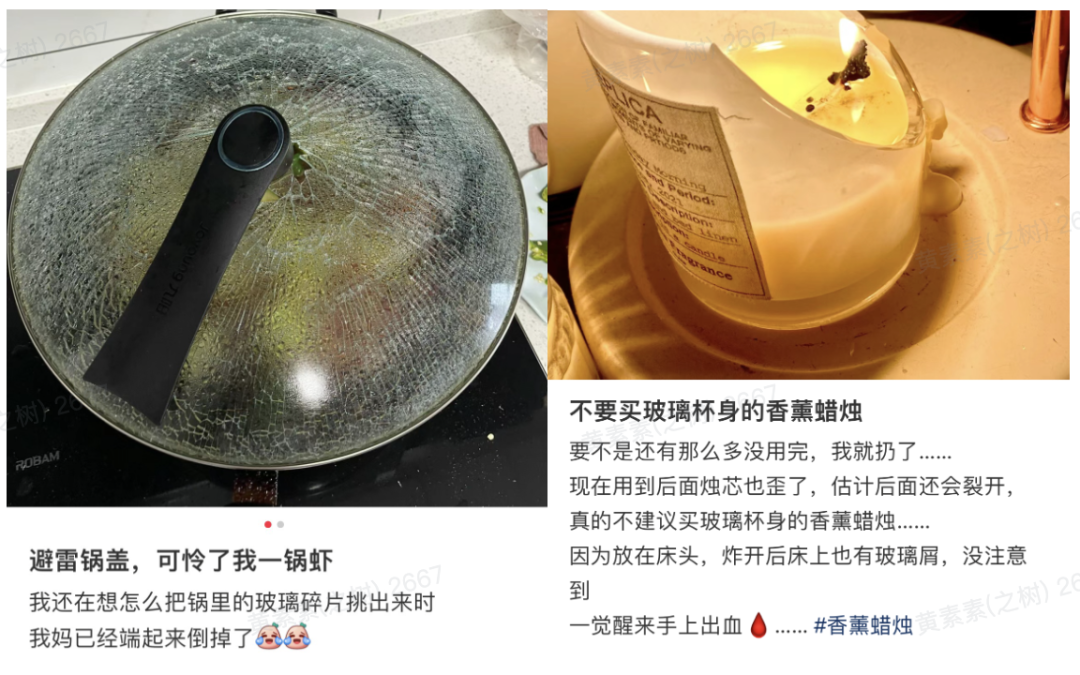 玻璃炸裂带来的不幸,还有很多:有人因为碎玻璃锅盖浪费了一锅虾,也有人因为香薰没用完,杯身的玻璃裂开也舍不得扔……