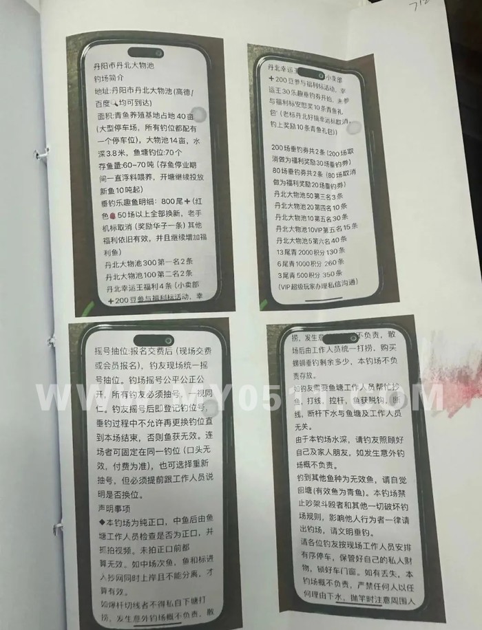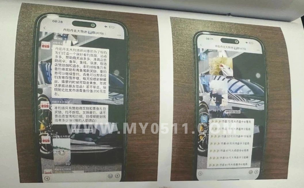 2024年初,王某、束某2人商议合伙开一个全新模式的钓场,钓客支付高额入场费,钓池里放入一定数量的带标记的“标鱼”,不同标记对应不同奖金,钓上就能拿奖金。随后,王某在丹阳市丹北镇承包了约20亩的鱼塘开办大物池钓场,购买了5000多条青鱼,其中普通鱼4000多条,“标鱼”700多条。