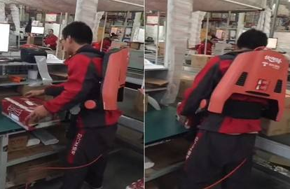 京东在2017年就为旗下员工配备了外骨骼机器人,虽然京东早已开始部署无人仓储系统,但仍需要人工来协助机器工作。员工每天弯腰几千上万次分拣快递,长此以往,铁打的身体也受不了。