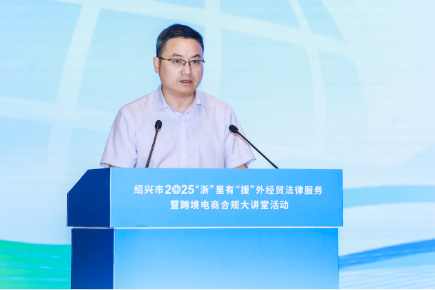 省商务厅贸易救济局局长戴连俊在致辞中指出,当前国际贸易形势严峻,浙江积极应对贸易摩擦成效显著,绍兴在应对工作中表现突出。未来将持续强化贸易救济人才队伍与制度体系建设,为企业提供更优质的贸易救济服务,助力企业积极应对贸易摩擦。
