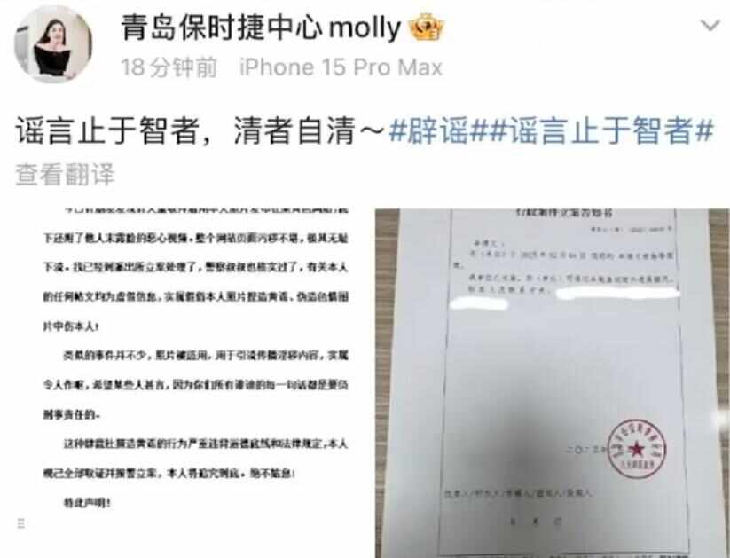 前段时间,molly在接受采访时回忆此事,称今年2月自己的一个客户发信息说:“molly姐,你被人‘造黄谣’了。”molly当时说:“没事儿,之前2023年的时候也被造过。”