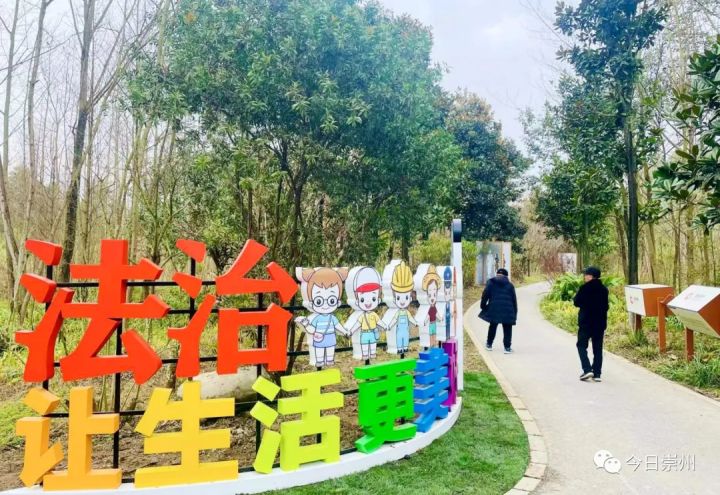 在曲径通幽的林荫步道上设置古意盎然的普法宣传展板,集中展示德法先贤故事和先贤名句。任思绪飘扬,静心揣摩中华民族德法兼治的智慧积淀。