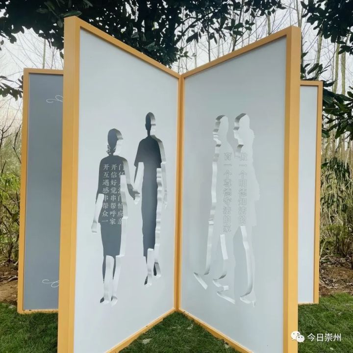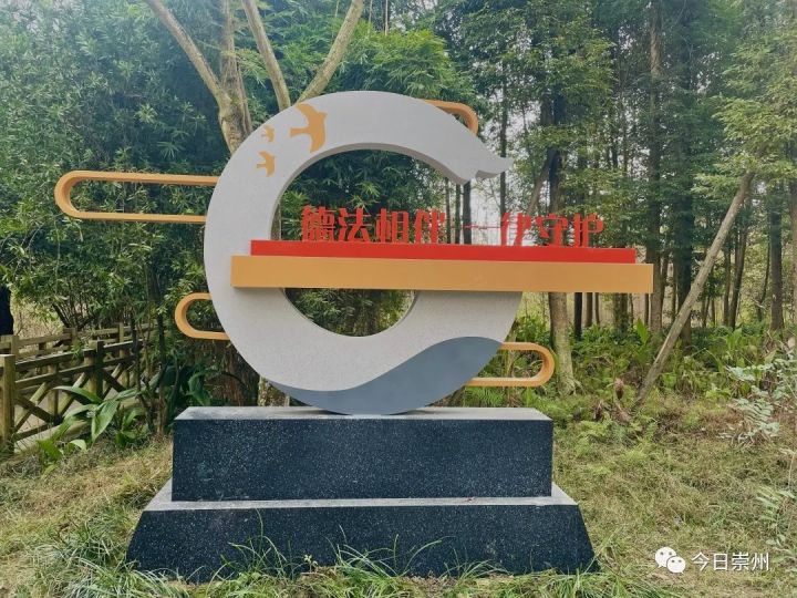 与入户导视标识牌相隔数米,一座“德法相伴,一律守护”景观小品让人眼前一亮。代表和谐的飞鸽图案,映衬着背后错落有致的草木疏影,引人关注,使“德法合治”的理念深入人心。