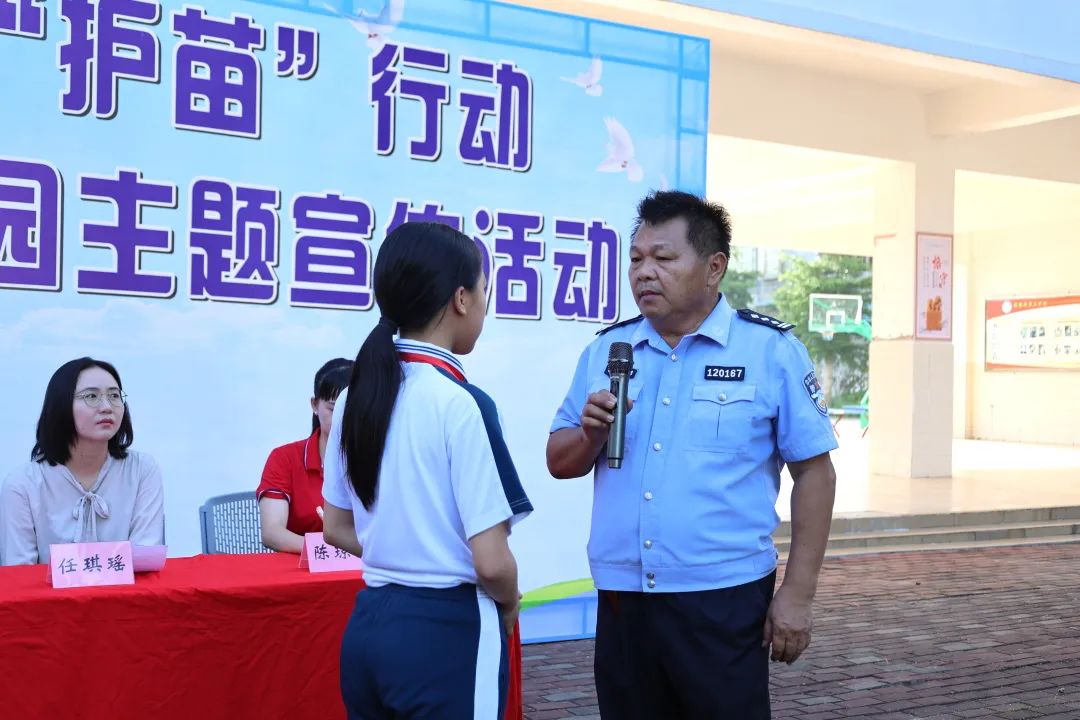 活动开始,由学生代表发言,号召同学们认真学习法律知识,树立维权观念,学会用法律维护自己的合法权益。随后金江派出所民警王进树同志针对未成年人保护知识进行宣讲,通过一个个案例深入浅出地教育学生们要加强自我保护意识,并对学生在校园生活中存在的疑惑进行现场答疑。