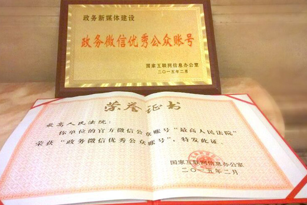 最高法院官方微信荣获全国政务微信优秀公众账号