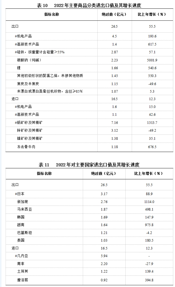 青海省2022年国民经济和社会发展统计公报 2022 选择区域:中国>>>