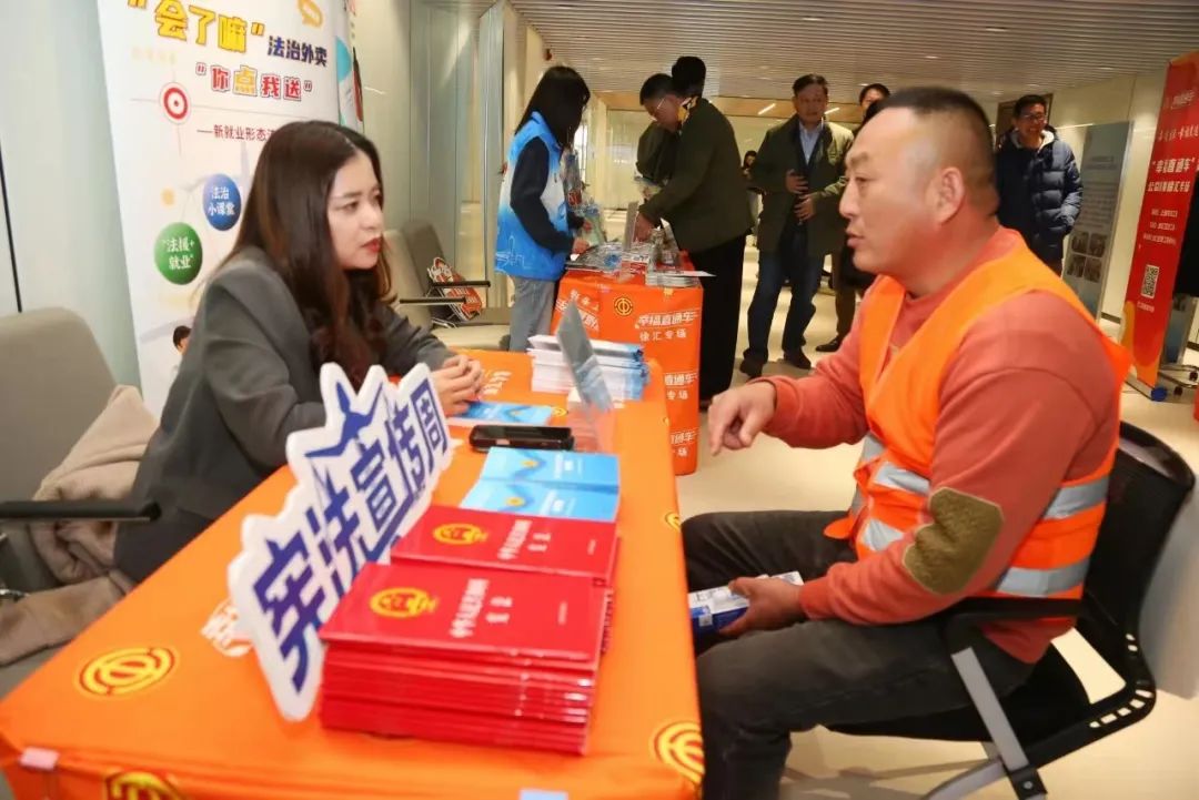 一场为新就业形态劳动者打造的法律服务活动,日前在徐汇区工人文化体育中心举办。市总工会党组成员、副主席赵德关,徐汇区人大常委会副主任、区总工会主席朱伟红等领导出席活动。