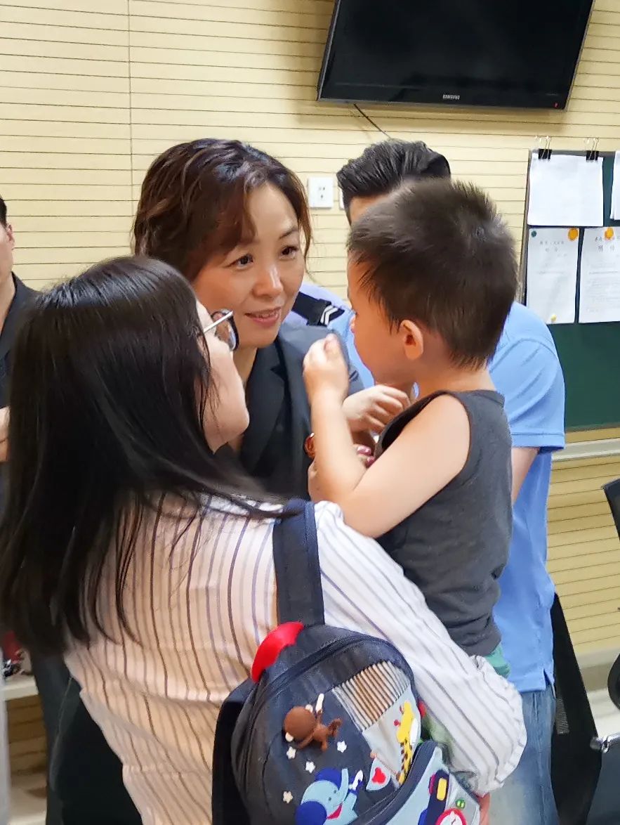 法官赶紧将孙女士带到一旁安抚,法官助理临时上岗,给孩子讲故事、拿玩具。看着身体瘦弱、小声哭泣的孩子,“临时妈妈”心疼不已,一把将孩子抱在怀中,在走廊里边踱步边轻声安抚。