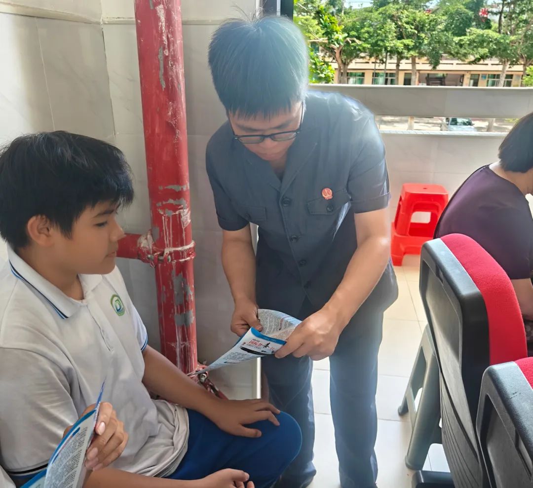 夕阳西下时,符亮法官助理向在座的同学们分送有关普法折页:“暑假期间,法律咨询不打烊,欢迎有兴趣的同学可以在爸妈的陪伴下到我们法院旁听庭审。”这场活动不仅要教会孩子远离危险,更要让他们成为法治火种的传递者。文昌法院通过暑假前的普法宣讲,让每个孩子都能沐浴在法律守护和照耀下的人生康庄大道之上。