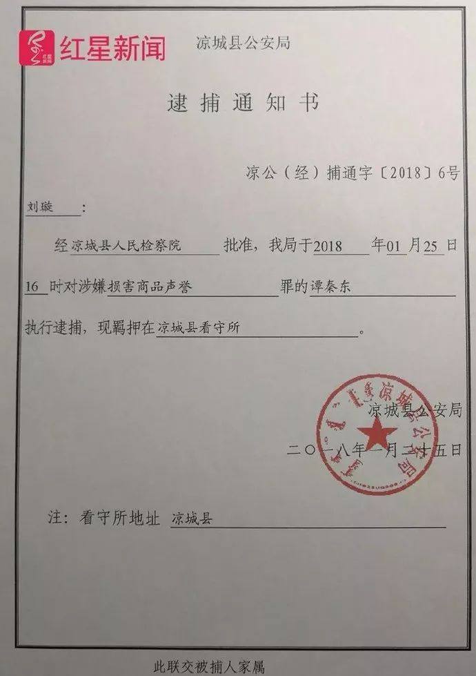 ▲凉城县公安局的逮捕通知书 受访者供图