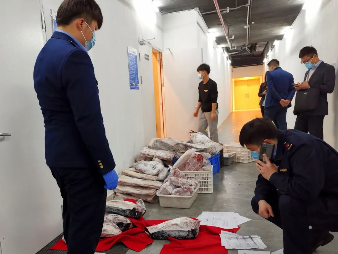 2021年1月7日,雨花台区市场监督管理局铁心桥分局执法人员对江苏壹品庄园农业科技有限公司冷链食品仓库进行检查时发现有2020年11月12日之后购进的进口牛肉,产品有入关证明、检验检疫证明和外地核酸检测报告、消毒证明,但没有《南京市进口冷链食品出库证明》,执法人员现场对涉案食品依法予以查封。