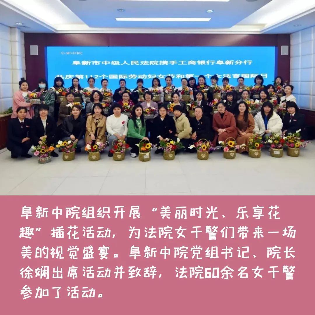 阜新市中级人民法院组织开展“美丽时光、乐享花趣”插花活动,法院60余名女干警参加。