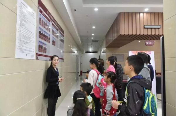 “这就是法院立案的地方。为了方便群众,立案庭实行柜台式流水作业,而且实行立案登记制。”在讲解员的讲解下,孩子们了解了法院的立案程序。