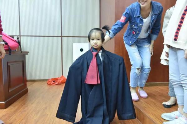 对于讲解员的提问,孩子们都胸有成竹地纷纷举起手,“不能玩手机。”“不可以吃东西。”“不能喧哗,还有走来走去。”随后,进入了体验环节。孩子们穿上了法袍和律师袍,过了一把“小法官”和“小律师”瘾,切身感受司法的公正和法律的威严。