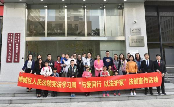 当天上午九点整,干警家庭在绿岛湖办公区一楼广场集中,禅城法院党组成员,政工科科长李正钊到场致辞。他表示,宪法是我国的根本大法,具有最高的法律效力。在我国第五个“国家宪法日”即将到来之际,禅城法院举办该活动就是为了更好地弘扬宪法精神,营造学习宪法的良好氛围,从法院到家庭让更多人在潜移默化中崇尚法律,并积极参与法治宣传。