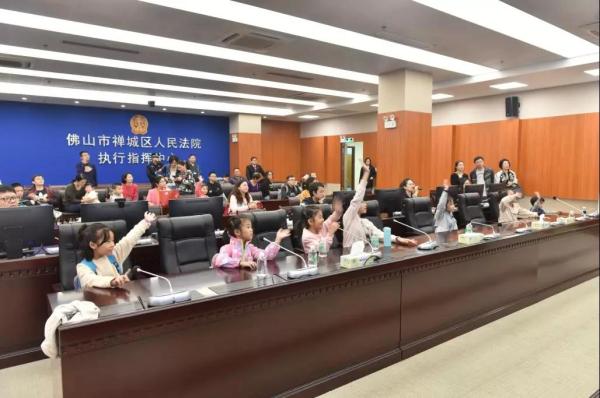“这里还建立综合指挥中心,打造集科技法庭、法院综合业务系统、执行指挥中心、安保系统、党建系统于一体的禅城法院综合指挥平台。”讲解员为大家介绍着。随后,讲解员还让孩子对不懂的地方进行提问。