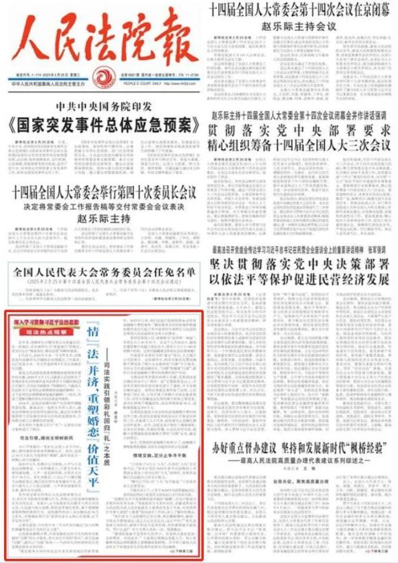 最高人民法院高度重视婚姻家庭领域矛盾纠纷化解,2024年2月1日,《最高人民法院关于审理涉彩礼纠纷案件适用法律若干问题的规定》正式施行,为司法实践提供了明确指引,与最高人民法院关于适用民法典婚姻家庭编的解释(一)、关于适用民法典婚姻家庭编的解释(二)结合,形成了逻辑完整的彩礼纠纷法律适用规则。